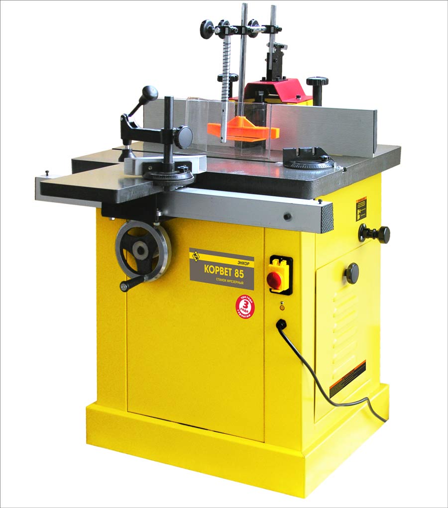 Фрезерный станок «Корвет 85» предназначен для фрезерной обработки деревянных заготовок: поперечного строгания, вырезки криволинейных поверхностей, выборки фальцев, пазов, гребней, калевок, шпунтов, шлицев и вырезки неправильных форм.